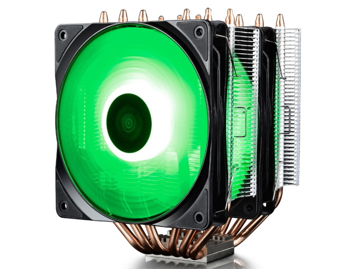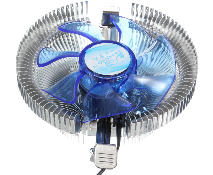 A low device made in Taiwan for cooling the processor. Wave-shaped blades, and a radiator with 48 aluminum fins strung on five copper tubes. For improved heat dissipation, direct contact technology through thermal paste is used. The rotation speed is regulated through a 4-pin connector within 500-1600 rpm.