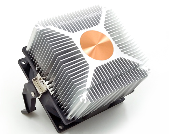 Compact model made in China, compatible with the most common AMD sockets. Well suited to cold CPUs with power dissipation up to 65W. The noise level is 28 dB at a maximum rotation speed of 2.5 thousand revolutions per minute.