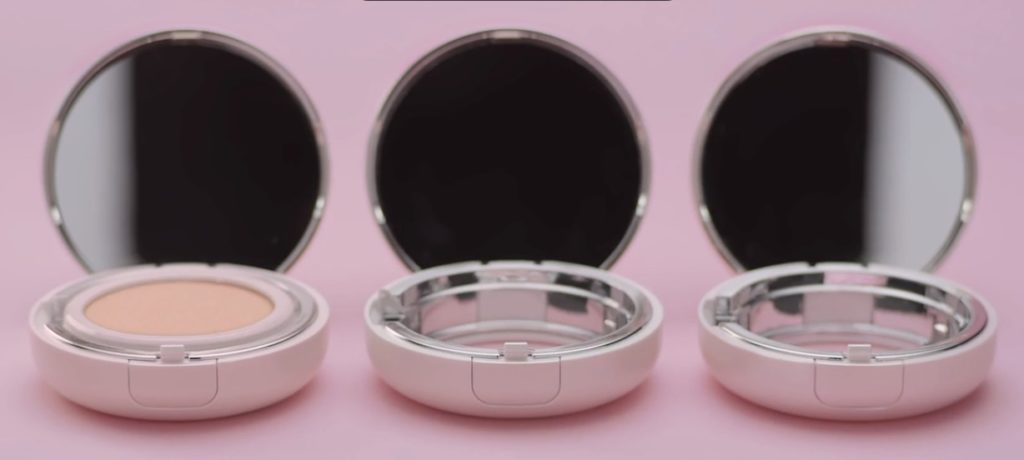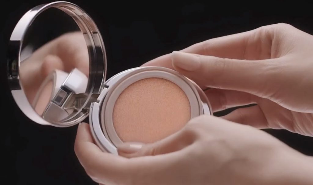 The name Cushion comes from the English word for pillow. The cosmetic product is hidden in a small box resembling a powder box. Under the lid is a sponge-cushion with a dense, finely porous surface. It is impregnated with foundation with a light texture that resembles a fluid.
