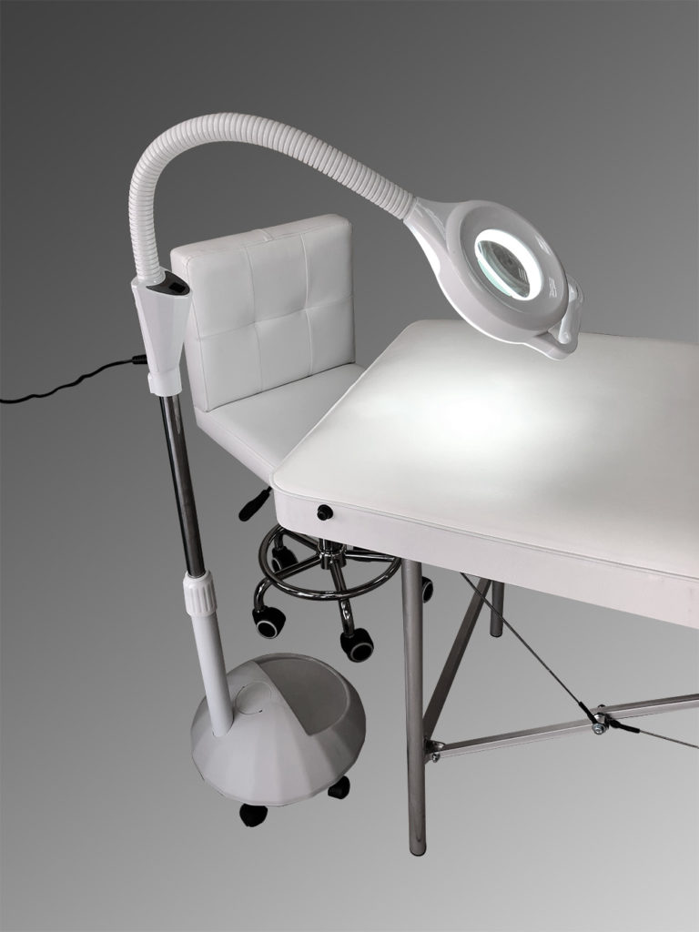 The category of floor lamps includes models that are installed on the floor and, as a rule, occupy a fairly large space. Products are suitable for work by many masters, not only cosmetologists.