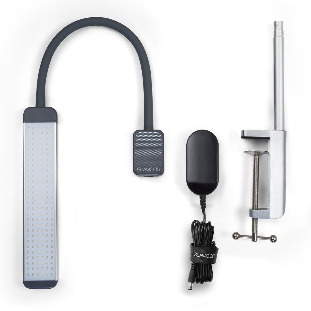 The portable device model Glamcor Reveal, which comes with an extension cord and a bracket, will be a great helper for a beautician and not only. The unit is attached to the plane, and due to the flexible bracket it can take the required angle of inclination. 168 LEDs illuminate the workplace with a cool light, and the presence of a switch with five modes allows you to adjust its brightness. The light does not irritate even when turned on at maximum brightness, allowing you to see fine details with eye comfort. The clamp allows you to securely fix the device on the work surface. Glamcor Reveal is suitable for cosmetologists, tattoo artists and many others whose work is painstaking work related to small details.