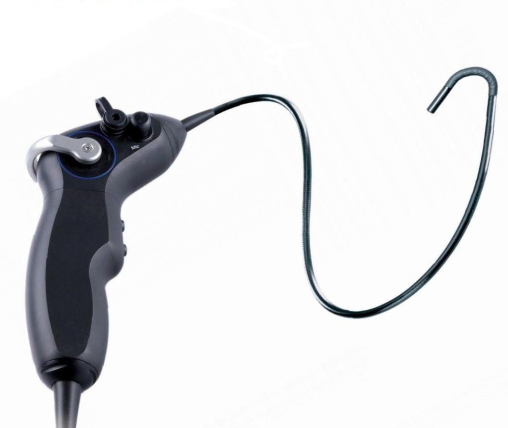 This video is a German-made naso-pharyngo-laryngoscope. Here we will start with the fact that externally the device is very compact, and its design is very ergonomic. In addition, it is easy to use and does not require complex manipulations with the connection to the monitor. It has a special video chip that transmits a high-definition image. Good visibility is provided by a special LED located on the handle. It is used to examine not only the throat, but also the ear and nose.