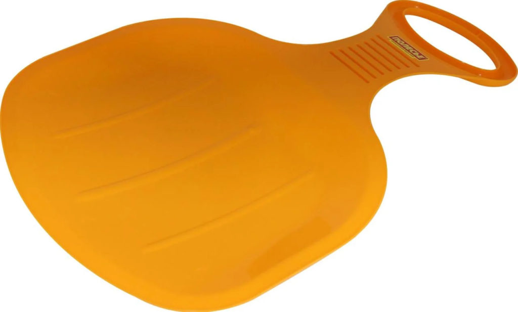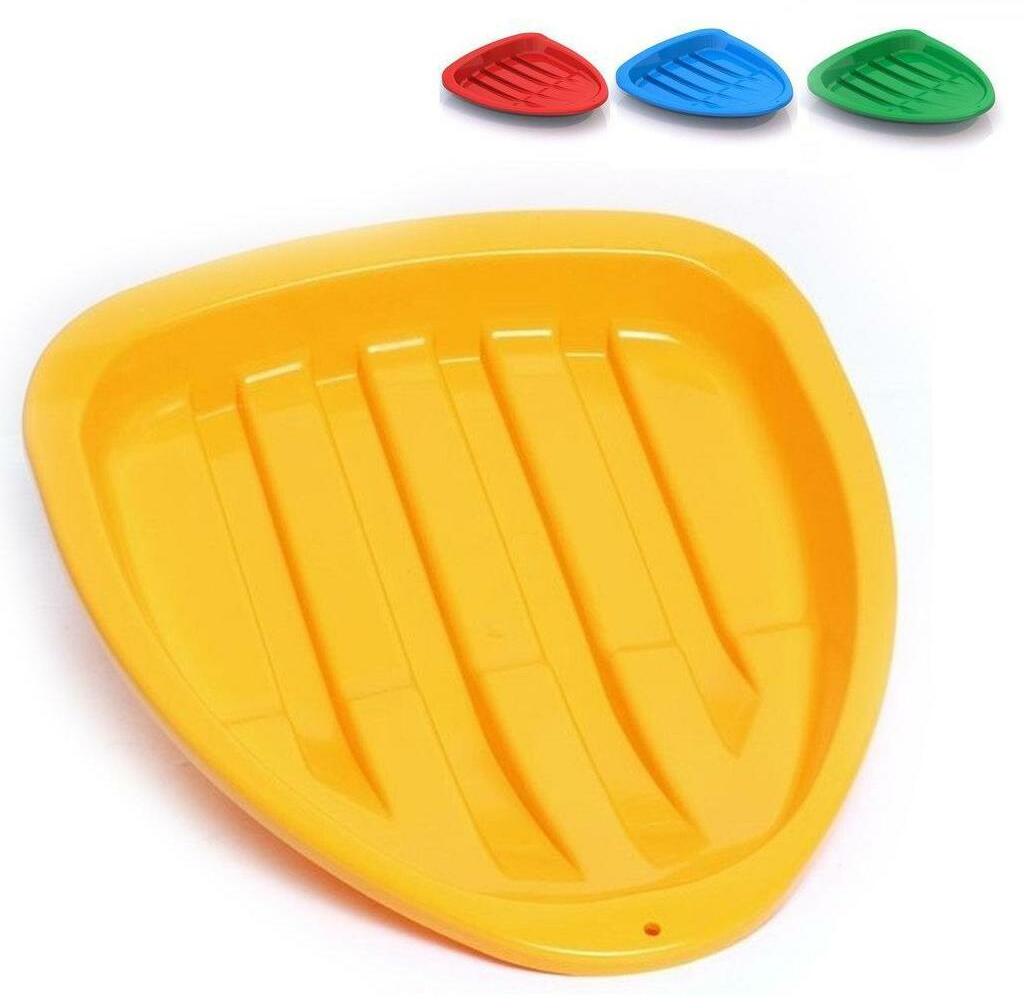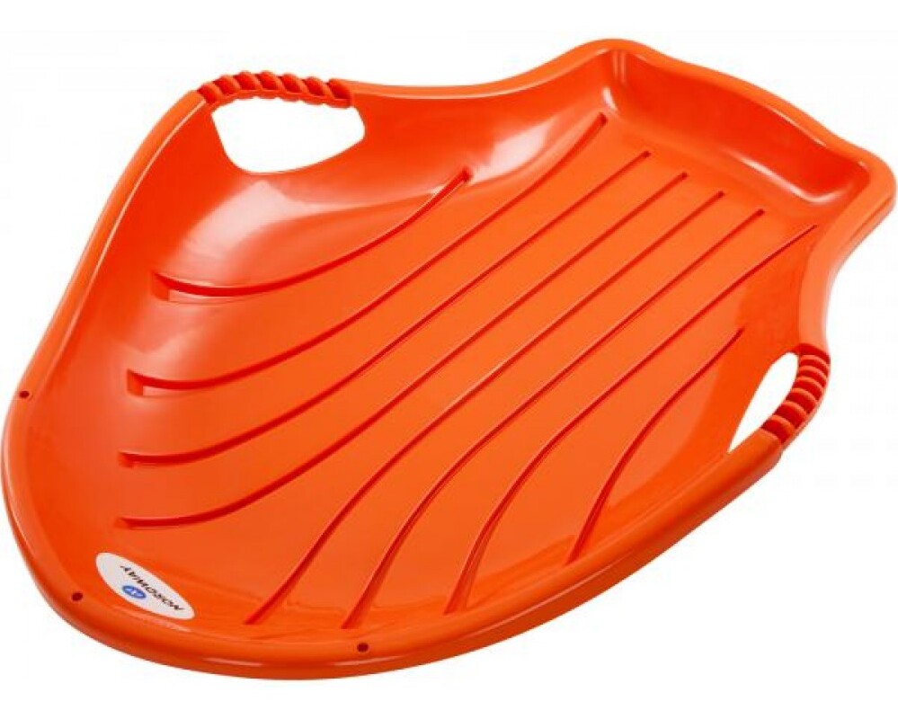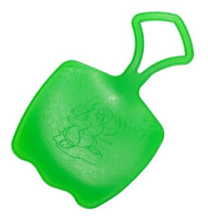 Devices of this brand of a domestic manufacturer are perfectly adapted to Russian frosty and snowy winters. Made of durable frost-resistant plastic, they provide a long service life and high-quality sliding on the snow or ice surface of the slide. Having an oblong shape with high sides, the products are great for convenient placement of children in them. And the high curved edges provide not only protection from snow, but also serve as a kind of handles to keep the body in balance. The presence of guide strips on the bottom make the fixture stable and improve the sliding process. At the front end of the ice rink there is a hole for a rope, so that it is convenient for children to pull it up the hill. All products of this form have standard sizes intended for children 4-6 years old. They are 43.5 x 37 x 5.5 cm.