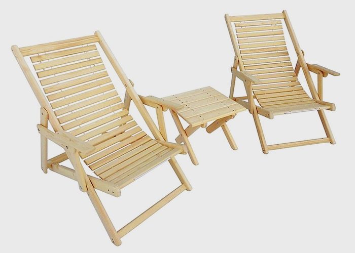 It is a set consisting of several folding lounge chairs and a comfortable table. For the manufacture of the set, wood is used - spruce or needles. Beds have three positions: lying, half-sitting and sitting. Due to this, the furniture can be used by both children and adults. If necessary, transportation is allowed. Dimensions: 66x45x120 cm. When unfolded, the depth reaches 100 cm. The size of the side table is 45x45x40 cm. An excellent choice for those who are used to traveling comfortably and relaxing in nature with the whole family.