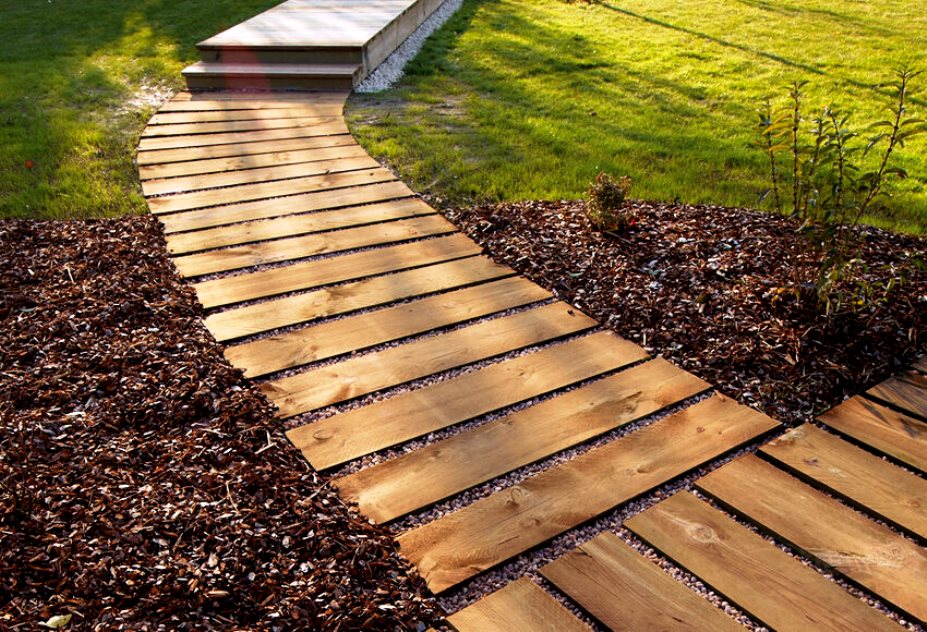 For country paths, the use of wood is the best option. It is not only beautiful, but also comfortable. You can run barefoot on them without fear of catching a cold. They will successfully fit into any landscape design. Various types of wood are used: