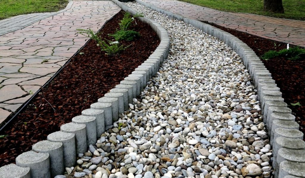 Very beautiful, but not practical enough for garden paths. It is laid only in order to decoratively zone individual sections of the garden, for example, to separate flower beds from alpine slides. The concept of "natural embankment" includes sand, sawdust, tree bark, gravel, crushed stone.