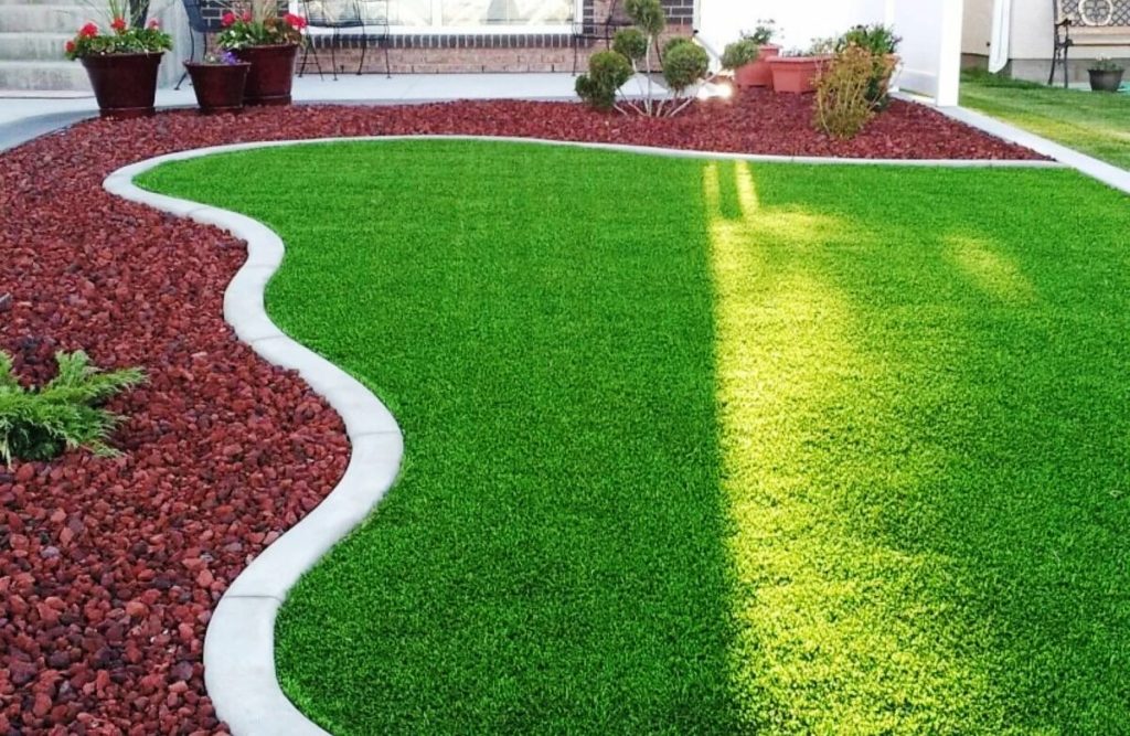 Currently, a very common option for decorating garden plots. A properly laid lawn will delight the eye throughout the warm season, allowing children to frolic on it, play football, set up tents, and sunbathe on mattresses.