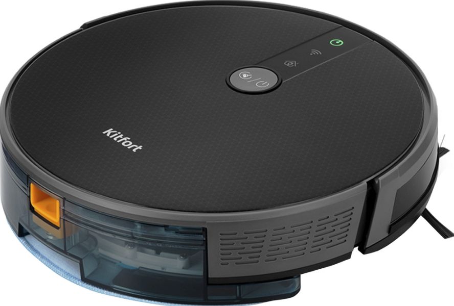 For dry cleaning, Kitfort offers a mobile and inexpensive device powered by a Ni-MH battery with a capacity of 1 thousand mAh, the charge of which is enough for 1 hour of battery life. To replenish the power supply, you need to put the equipment on the base yourself, within 6 hours the power will be fully restored. The robot works in 3 modes along the wall (movement type). It is equipped with a side brush and a fine filter. The soft bumper protects it from impacts and prevents damage to furniture. Management is carried out using the remote control. All garbage is collected in a 200 ml container that is easy to clean. The diameter of the structure is 29 cm, height - 7.7 cm, net weight - 1 kg 750 grams.