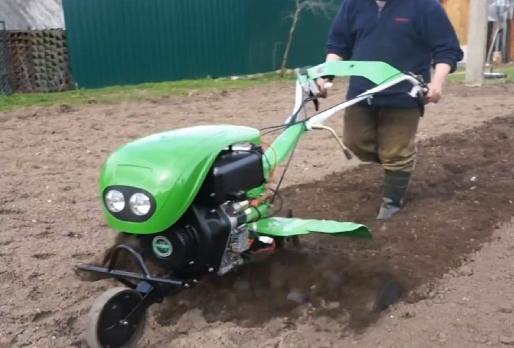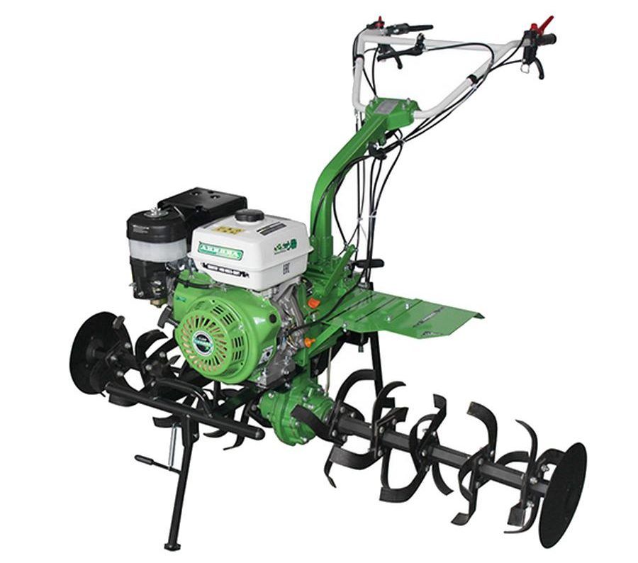 A good cultivator with a diesel engine with a capacity of 6 "horses" and a volume of 296 ml. It has good performance and stability under heavy loads and robot volumes. Designed exclusively for professional use. It will be appreciated by amateur gardeners and farmers for whom agriculture is a means of earning. According to its characteristics, it is quite capable of competing with mini tractors, it can perform no less volume.