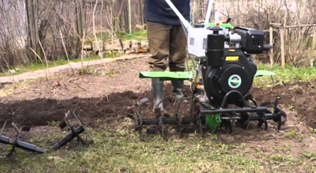 Taking into account all the characteristics, the cultivator is designed for processing large areas of land. The kit includes 40 rototillers with an assembly of 5 knives per group. They allow you to plow virgin, clay and overgrown soil. With a flow rate of about 250 milliliters per hour of tank capacity, a large amount of work is enough. This indicator is nominal, therefore, with an increase in load, it will definitely increase. But the performance hit will be negligible.