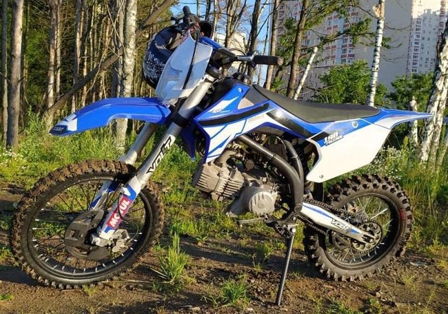 Transport with a cylinder 4-stroke engine type YX, equipped with a manual gearbox, air cooling system and a Molkt PZ26 carburetor. Front fork "VOLT V-ONE" at 83 centimeters. The traverse is cast aluminum, the pendulum is made of steel, as is the tubular frame. Rear shock absorber with rebound adjustment and compression. The motocross motorcycle of this series is made in a sporty style, withstands the loads on racing tracks and enduro races.