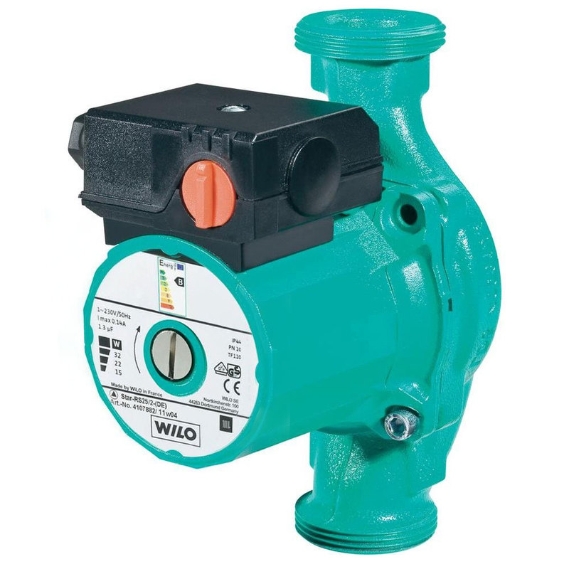 The Wilo Star RS 25/4 surface-mounted circulation pump is characterized by increased resistance to blocking current, thanks to a single-phase electric motor and a centrifugal pump.