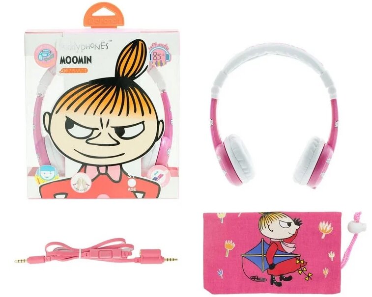 Foldable and adjustable for different head sizes. Color - white, pink. The pattern of daisies all over the surface, the heroines of Baby Mu, is the outer side of the speakers.