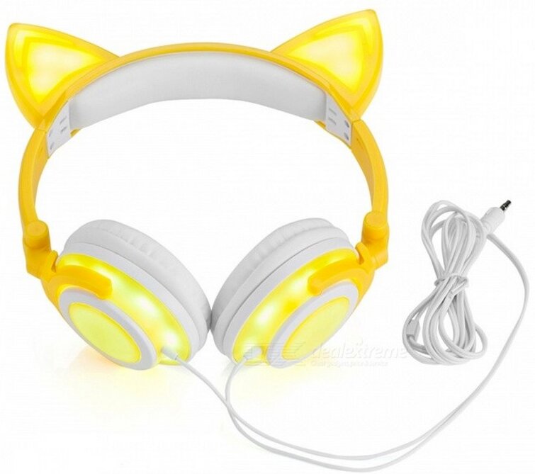 The classic form is distinguished by the presence of cat ears, backlight. The main color is yellow. White - the inside of the headband, cup details, soft lining of the ear cushions.