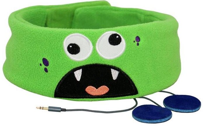 It differs in design - a soft headband (material - soft fleece). Ahead - fabric application, embroidery of a cartoon character, back - soft Velcro (film protection). The speakers are located in the slots-pockets (the end of the bandage). They have a flat shape, covered with round overlays. The blue side is the inside, the black side is the outside.