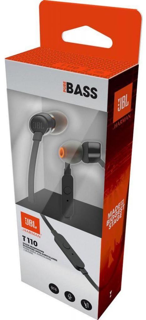 In-ear wired headphones with a maximum power of 30 mW with a straight plug.