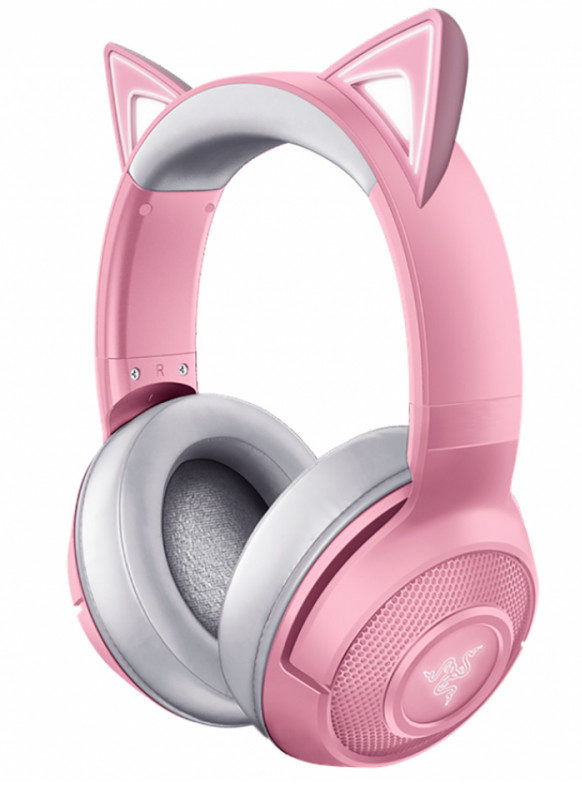Closed wired headphones Kitty Edition quartz, designed for use in computer games. This model is available in pink. The manufacturer used RGB lighting, which works in several modes and can change colors, this device illuminates not only the ears, but also the speakers, which creates a more spectacular look during use. The built-in microphone of the device suppresses extraneous noise and does not create an echo when talking. As for the technical characteristics, they are not bad, for example, the frequency range is from 20 to 20,000 Hz, and the battery capacity allows the device to work for 20 hours, and in the off mode up to 50 hours.