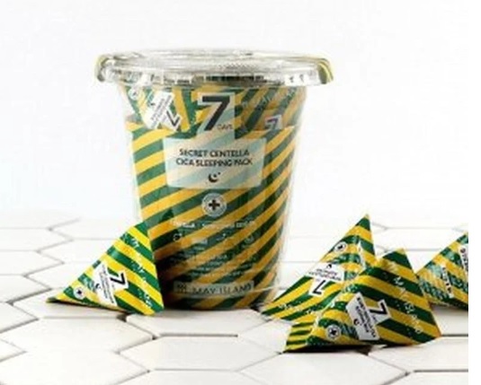The 7 Days Secret Centella Cica Sleeping Pack is available in 5 ml portion packs. The kit contains 12 servings. This form of release is convenient during travel or business trips.