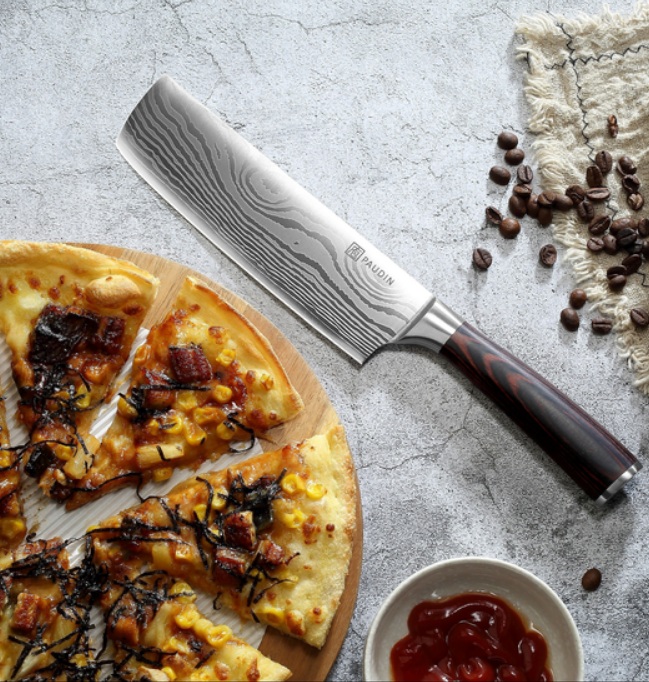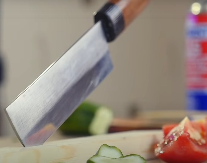 Its main feature is heavy weight, it is this moment that provides the subject with the necessary balance. Comfortable grip and roundness give a comfortable feeling. The material can be both simple propylene handles and plastic, as well as rare woods, metal, micarta. Additional inlay contributes to the final cost of a kitchen accessory.