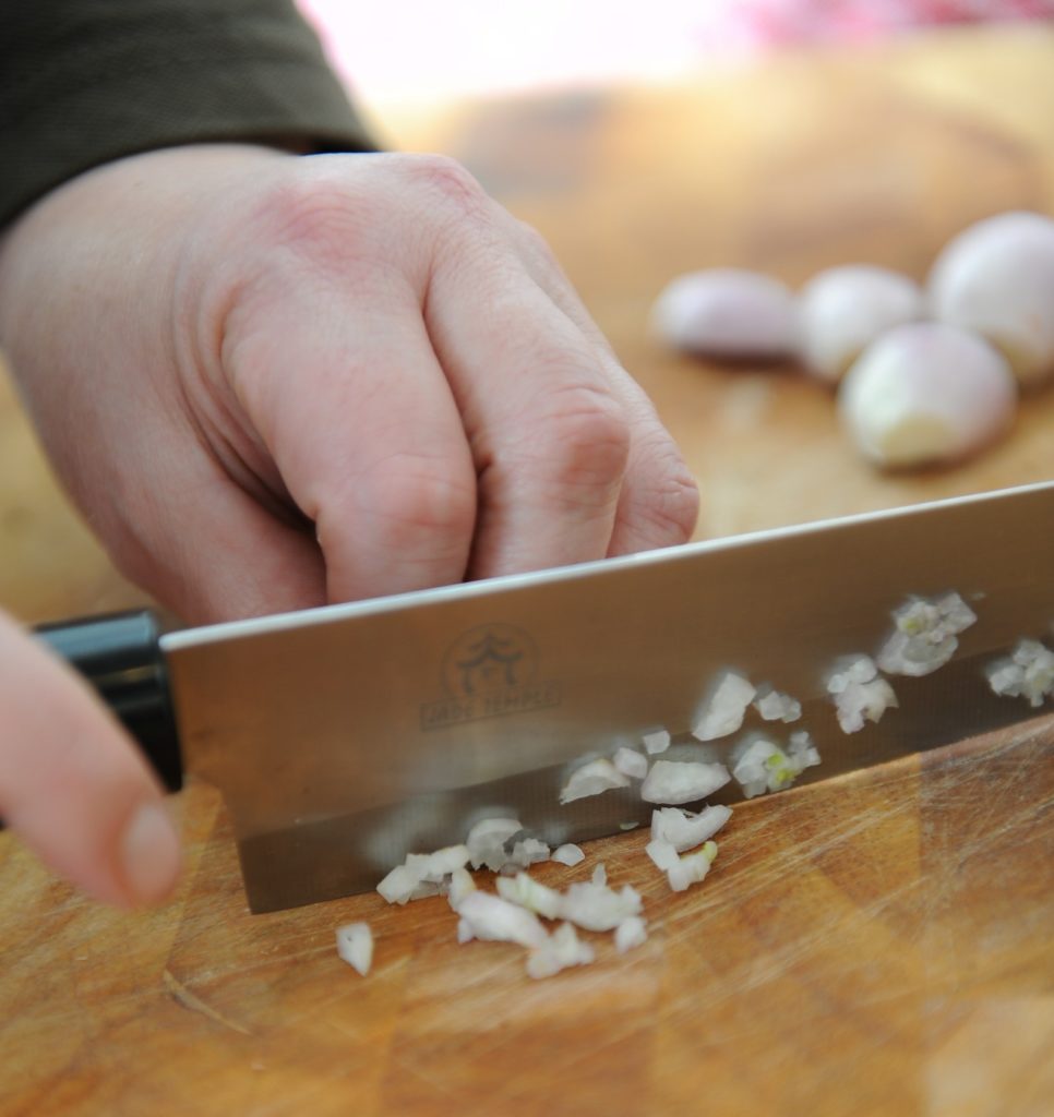 An additional advantage of Nakiri is the width of the blade, which is used as a spatula to transfer shredded products directly into the dishes.