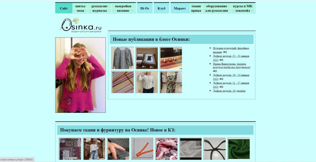 A popular needlework resource that brings together not only seamstresses, but also knitters, embroiderers and representatives of other types of needlework. A large number of master classes will allow you to master the tricks of tailoring luxury items, and communication with like-minded people will encourage inspiration and allow you to get advice in case of errors or difficulties.