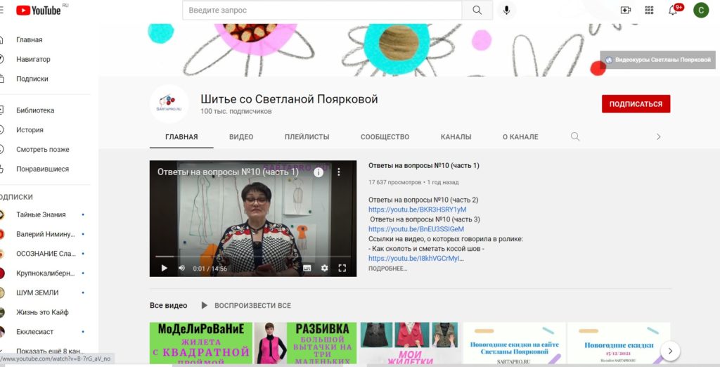 The channel of experienced seamstress Svetlana Poyarkova, located on the popular YouTube video hosting, contains a lot of materials on cutting and sewing various wardrobe items, ways to correct common mistakes. There are both theoretical webinars on cutting and modeling, as well as practical webinars on the specific performance of certain operations or tailoring of any product.