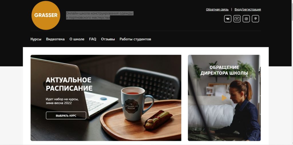 Grasser, a popular offline sewing school in Moscow and St. Petersburg, offers several online courses: basic skills, sewing lingerie, sewing light women's clothing, etc. The great practical experience of a team of professionals is the basis of each of the 18 programs offered to students.