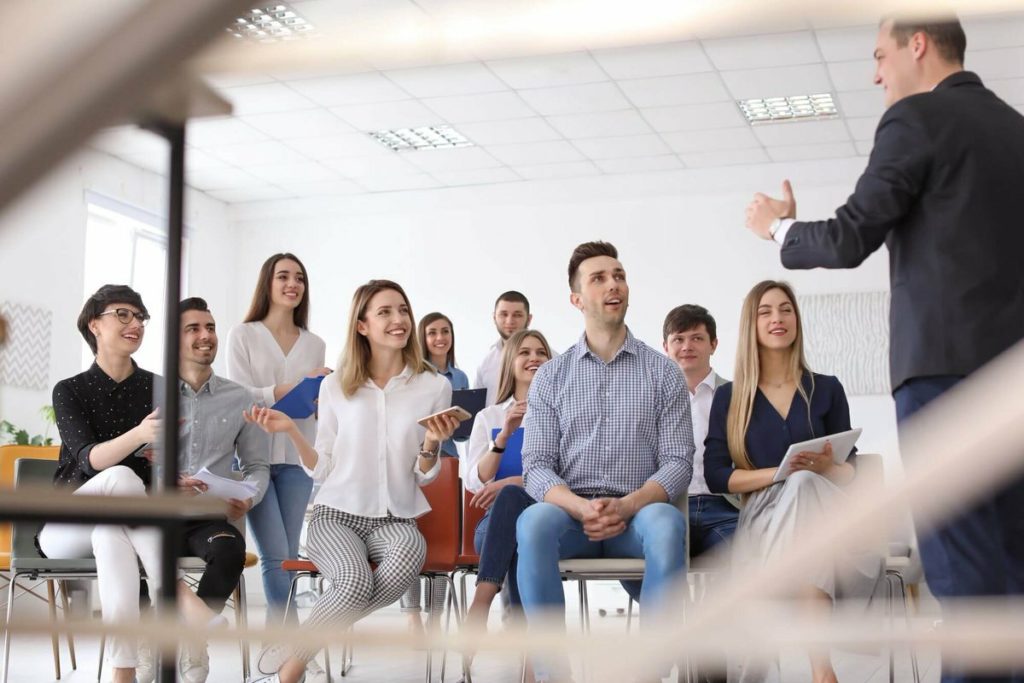 If the user is in frequent contact with a wide audience, he needs to develop his public speaking skills.For this, there are trainings that will teach the necessary gestures and facial expressions, how to win and hold the attention of the public, and everything necessary for oratory.