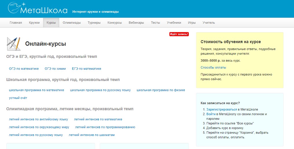 The first trial lesson is offered free of charge. In the future, the average price of basic and specialized preparation courses for the Unified State Examination and other programs is 800 rubles per month. Subscription for the entire academic year costs 6300 rubles.