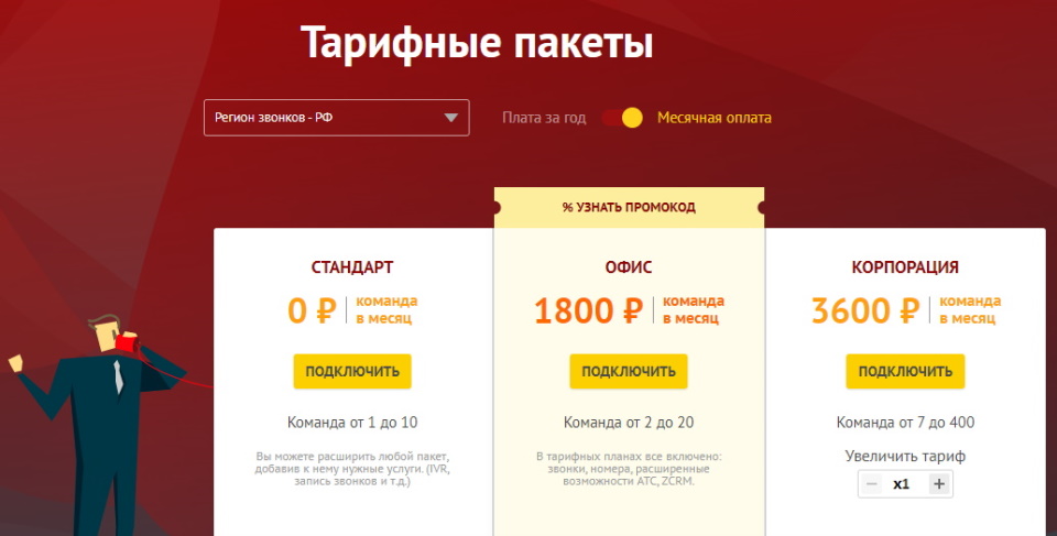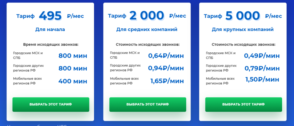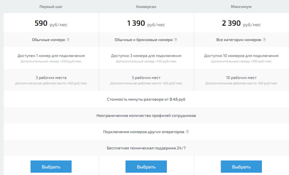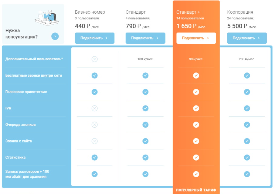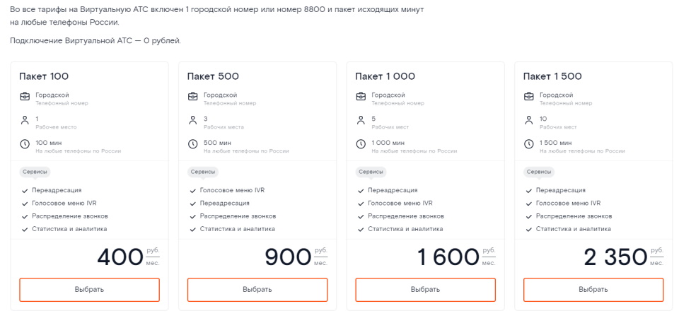 A popular provider of cloud telephony communication solutions for any business. Provides a quality service using professional analytics tools.A wide range of virtual numbers with codes of different Russian cities, used regardless of the actual location. Availability of federal numbers 8800 and 8804 with the possibility of free calls from anywhere in Russia. The ability to authorize users through an incoming call to a phone number. Using callback widgets to make callbacks from the site.