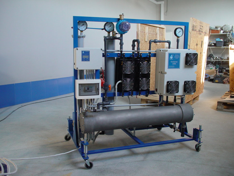 The unit with which water is saturated with oxygen atoms is called an ozonizer or ozone generator. The cleaning procedure takes place according to the following algorithm: the device drives air through the medium with the lowest percentage of humidity between 2 electrodes that are under high voltage. As a result, ozone is formed, since the oxygen contained in the air is ionized. In the course of processing water is cleared of harmful impurity. At the end of the ozonation of the liquid, sodium hypochlorous acid is added to it, after which the water purification process is completed.