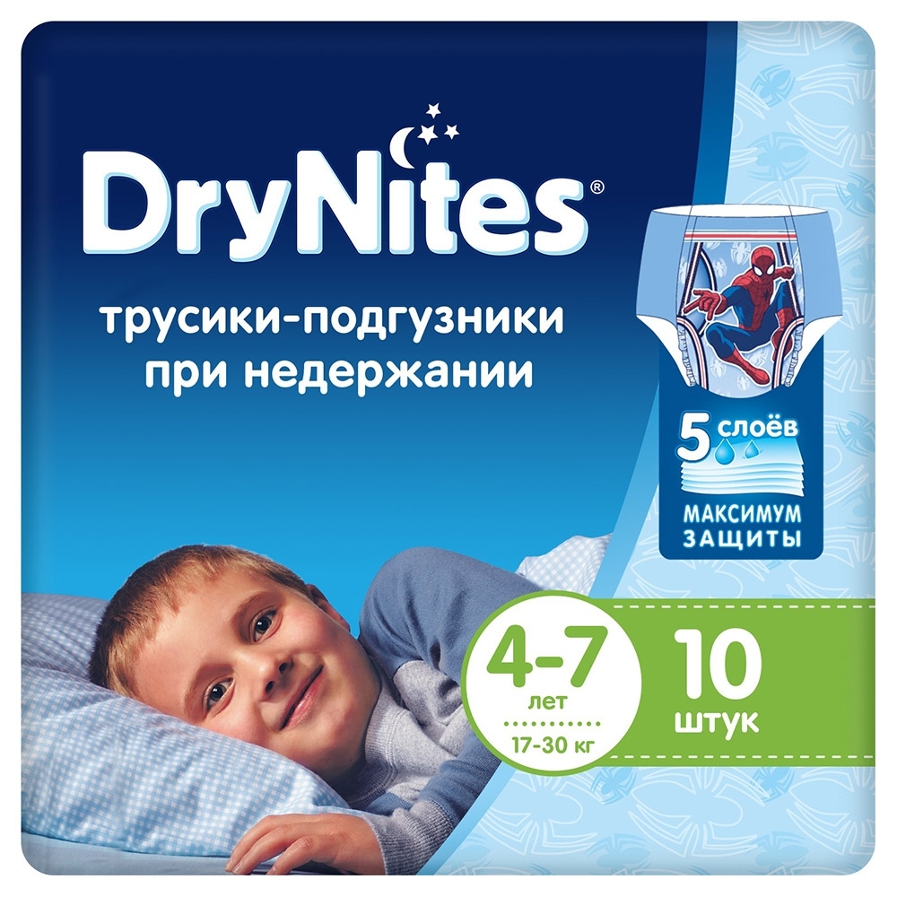 Huggies has a long history of making baby hygiene products, and the DryNites line has models for both kids and teens with urinary incontinence. They are suitable for use in the postoperative period for those who cannot move to the toilet on their own. Panties are created taking into account the anatomical features of boys, as well as in the appropriate design. The thin, soft material used in the creation is reminiscent of ordinary underwear. The degree of absorption in this model is increased, which ensures a restful sleep without requiring an additional change. The rubber bands are soft and elastic, create comfortable wearing conditions, are well fixed without moving out and without moving even during restless sleep.
