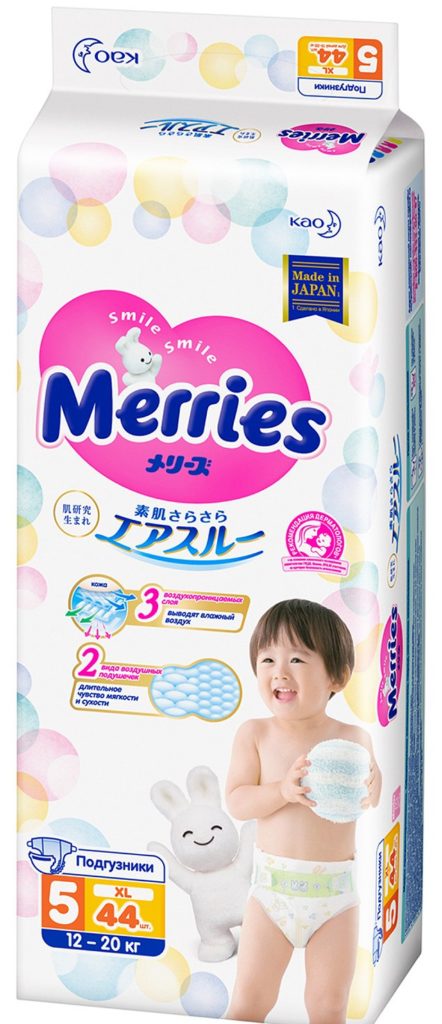 The Japanese company is engaged in the production of diapers for boys, which are very popular among parents of all countries. The brand has earned its rightful place due to the efficiency and quality of products. Panties of this brand are soft and gentle, reliably protect babies from moisture. Also, products are considered hypoallergenic and are suitable even for children with super sensitive skin. The inner part of the panties is impregnated with a special agent containing vitamin E, which provides additional care and protection against the appearance of irritation and inflammation. The inner layer has a relief embossing, due to which the contact of the diaper with the skin is minimized. The anatomical shape provides a comfortable fit, preventing shifting and slipping even with active movements. The outer part is equipped with a filling indicator that tells you when it's time to change the diaper. Also, many mothers noted that with prolonged use, the product does not appear a strong unpleasant odor.