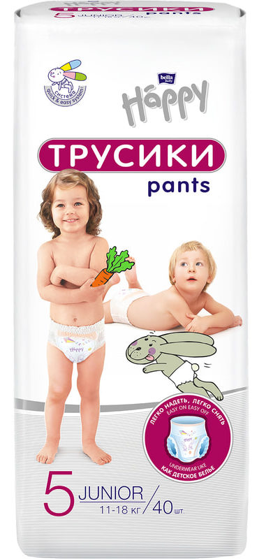 The special absorbent layer Dry Touch quality absorbs liquid and is specially developed taking into account features of a body structure of girls. Using panty-shaped diapers, parents can quickly potty train their baby and keep baby's skin dry for up to 12 hours.