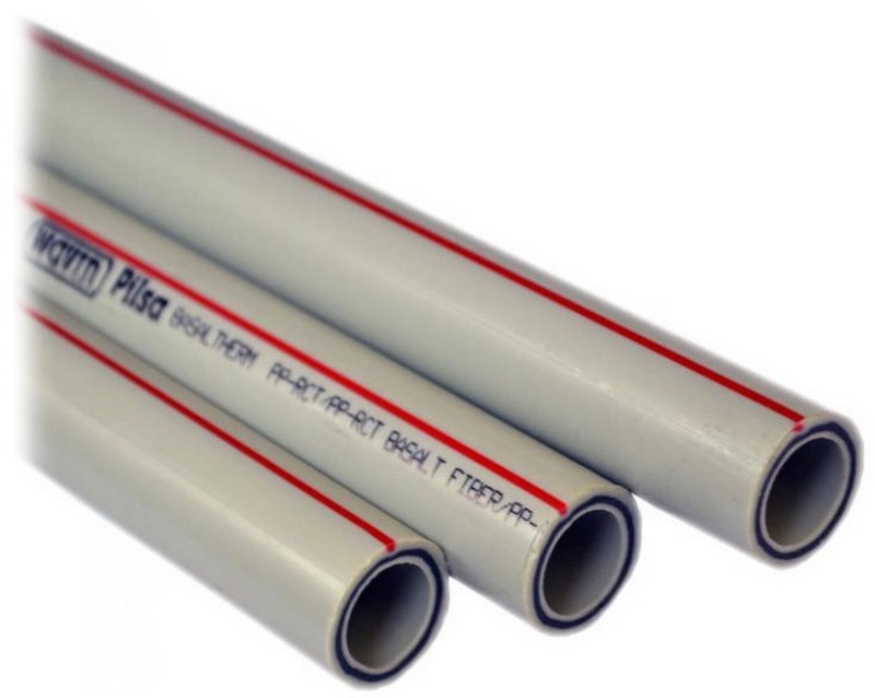 Samples with a similar reinforcement method are almost full-fledged metal-plastic pipes, in which only the outer layer is made of polypropylene. They are characterized by high resistance to elevated temperature ranges. Their disadvantages include: