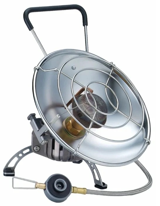 For 1 hour of work, 200 g of gas is consumed. The cylinder is placed separately, it is connected through a hose. When blown by wind, the safety system interrupts the flow of gas. The device operates silently. It can be chosen to heat a tent with an area of 25 square meters. m. Price - 2800 rubles.