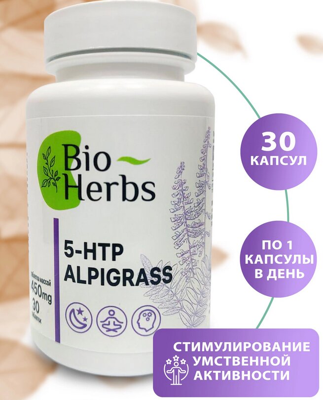 Apply: reducing stress, insomnia, improving cerebral blood flow, increasing attention, mood. It is distinguished by the presence of griffonia extract - a source of 5L-hydroxytroptophan (precursor of serotonin "hormone of happiness").