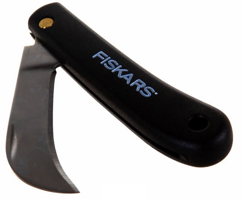 The grafting knife is used for cutting and trimming shrubs and plants. The knife blade is made of high carbon steel for durability. Corrosion protection is realized by means of a special coating. The handle is made of recycled plastic and has a comfortable curved shape for comfortable work with the tool. At the end of the handle there is a hole for hanging the tool. According to user reviews, this tool is a model of durability, comfortable use and ease of transportation and storage. The recommended cost for retail chains is 1200 rubles.