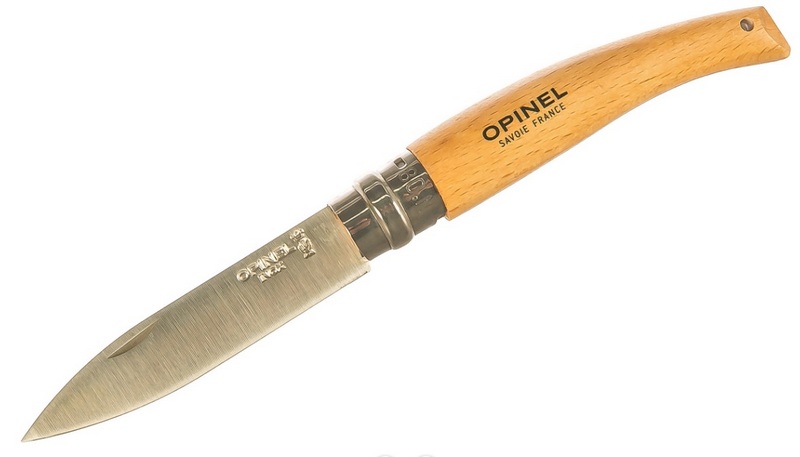 The knife is original in design.In terms of spiciness, it's very spicy. The cutting edge is very long lasting. The country of origin is France. The wooden handle and swivel blade lock also added convenience. There are no loopholes at all. The material of the blade is carbon steel, and the comfortable handle is made of beech and provides a secure hold of the tool without slipping. It is easy to sharpen due to the symmetrical sharpening. The recommended cost for retail chains is 750 rubles.