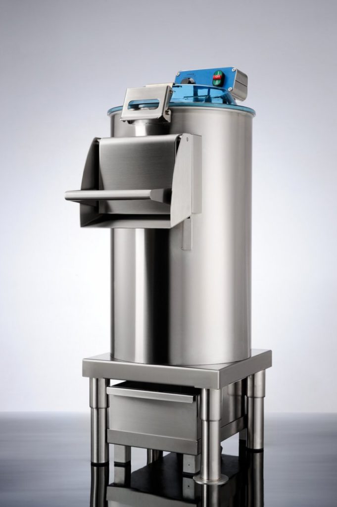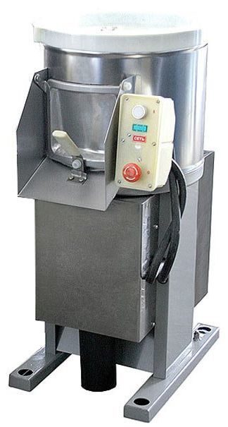 The small control panel has an on/off button and a timer. The device is placed on the floor, there are legs adjustable in height. To prevent tipping, it is possible to fix the unit body to the floor. The standard scope of supply includes a hopper and one abrasive wheel for potatoes and carrots. Additionally, you can purchase a disc for cutting potatoes, a basket for drying vegetables and herbs, an additional abrasive insert. The case of the device is made of stainless steel. A potential buyer may have difficulty with where to buy the unit, since it is not available for free sale, which is due to its high cost.