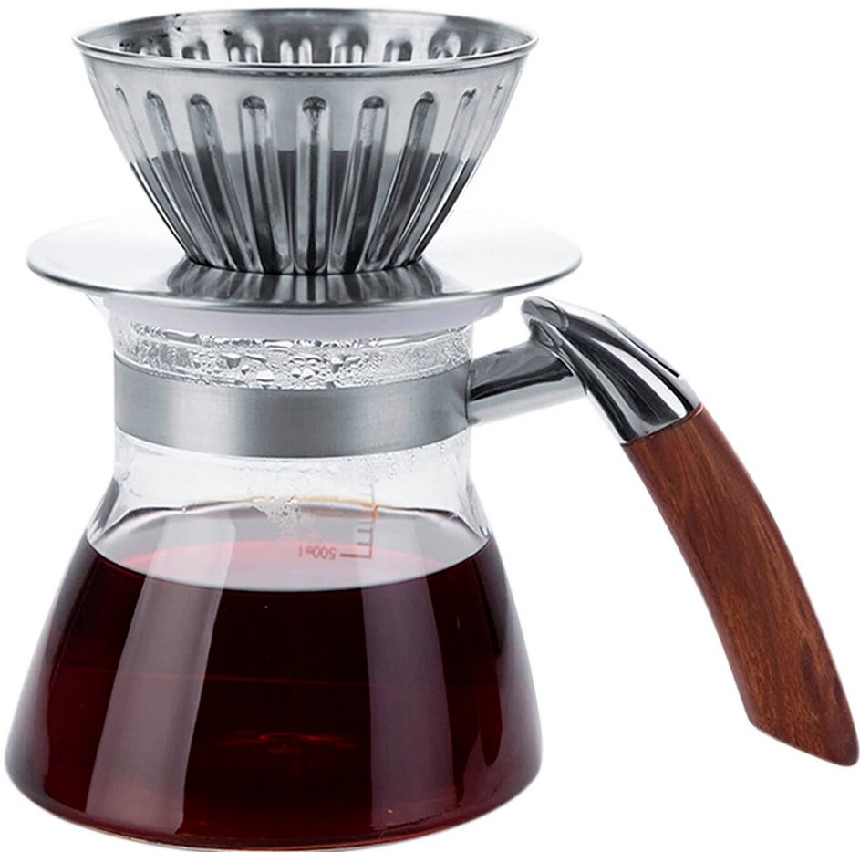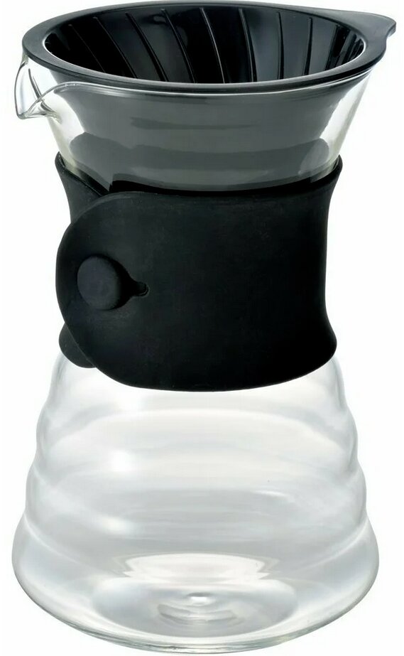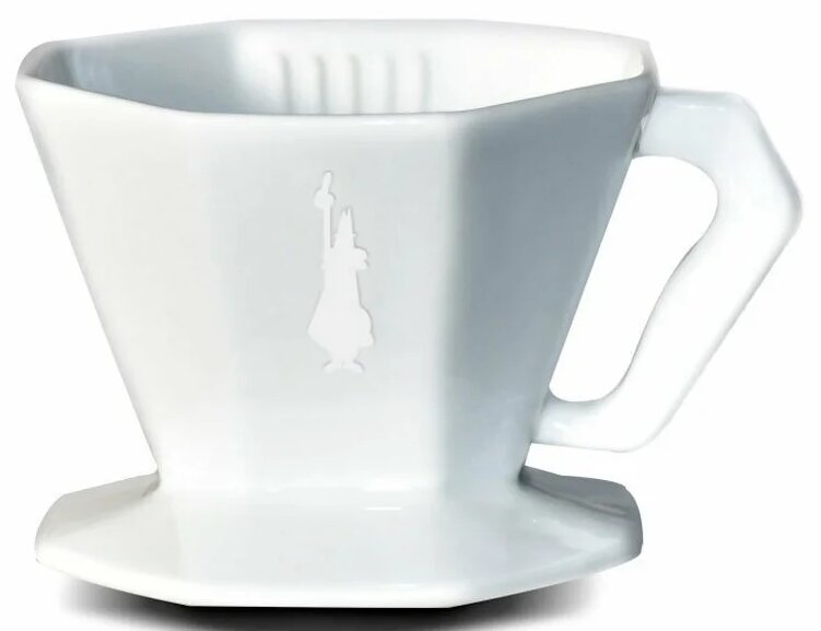 Classic, one-piece design. There is a wide base, a thin handle. Used with filters.