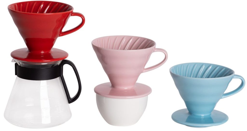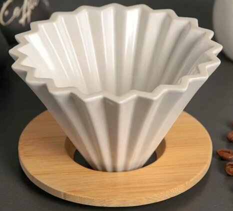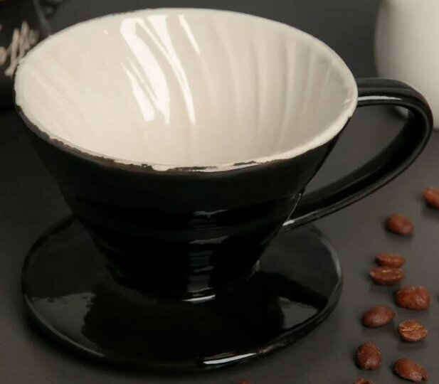 The classical structure of the structure: a cup (cone-shaped, funnel-shaped) with a wide base, spiral grooves on the inner walls, a hole at the bottom (one or more). Such a device is installed on a vessel (jug, large mug), a filter is inserted, ground coffee is added, and hot water is spilled.