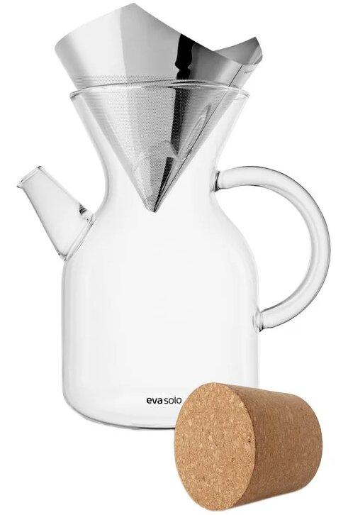 The set consists of three elements: a metal filter, a glass jug, a cork.