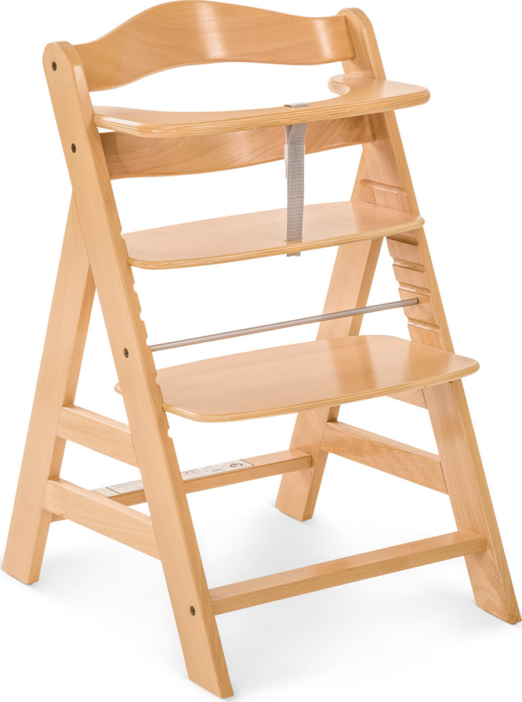 Despite the fact that the chair has a simple appearance, users note the high quality and easy care. The model can be used during the growing up of the baby, while the adjustable parts easily adjust to body weight. The frame is made of aluminum, the seat and back are wooden. The design is mounted on 4 bolts, so it does not require special skills to assemble. If necessary, you can purchase pads for the seat or back separately.