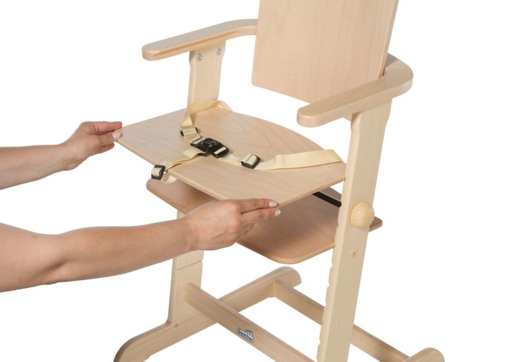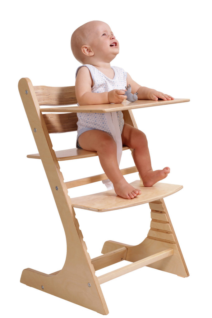 For small children, a removable table and side supports are provided. This reduces the risk of baby slipping. The chair is made of wood, which is not subject to cracking and damage.