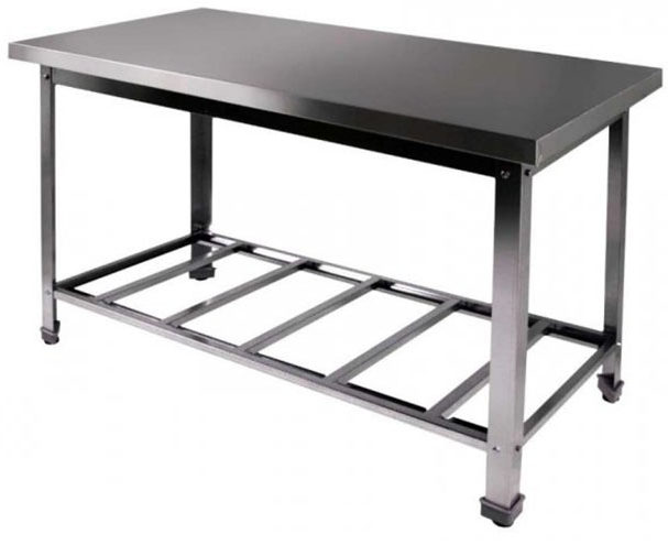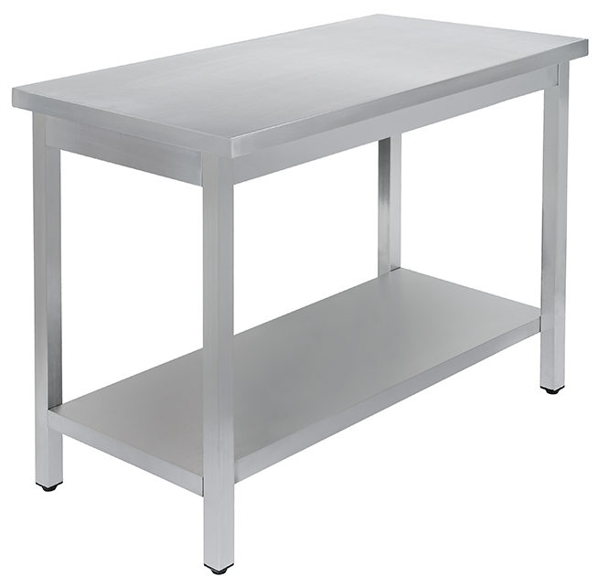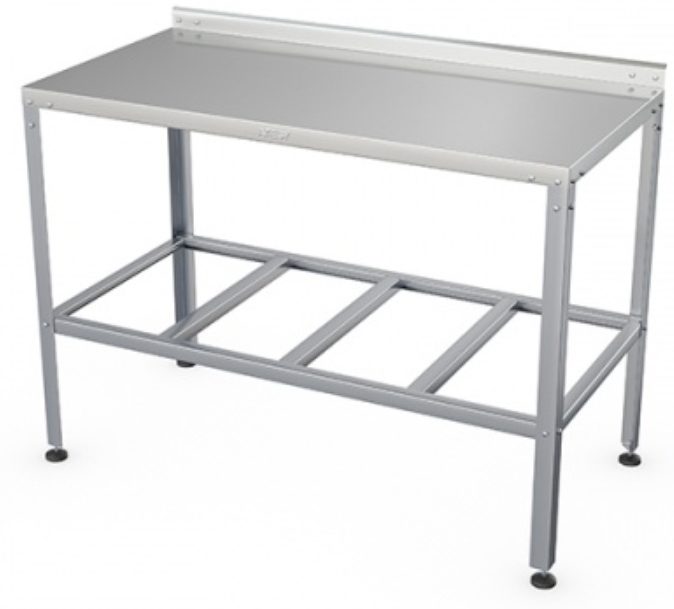 A small table is provided for small spaces. The frame is made of galvanized furniture, can be used for butchering all kinds of products. Small dimensions allow you to comfortably install furniture near the sink. The table top is made of stainless steel. The design is collapsible, so you can move the table to any place. Under the tabletop there is a special shelf, which can be removed if necessary. The tabletop can withstand up to 200 kg of load.