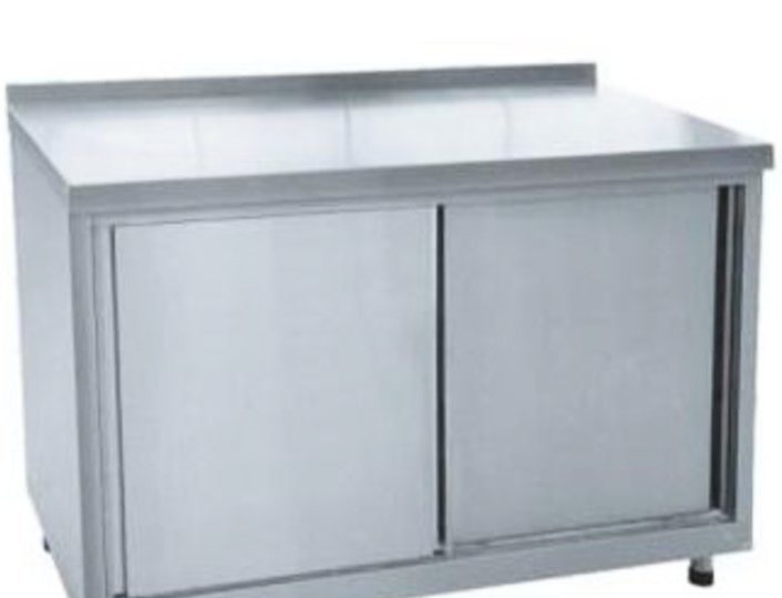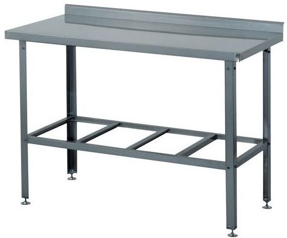 The production table is designed for preparing meat products, peeling vegetables and rolling dough. The closed system allows you to store different types of dishes and products on the shelf. The furniture is made of stainless steel. The tabletop can withstand up to 100 kg of load. With proper use, the device does not corrode and will last a long time. Stainless steel is not hazardous to human health and can be easily cleaned from food debris.