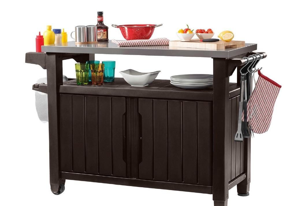 The Italian manufacturer presents its user with a cutting table, which is made of durable plastic. Furniture is easy to move around the kitchen, as the weight is small. Interesting external design will decorate any room. The curbstone has a table-top made of stainless steel. A convenient shelf will allow you to place a large number of products and utensils. You also need to pay attention to the hidden compartments for storing items. These compartments are closed with doors. On the side there are convenient hooks for towels and pickups.