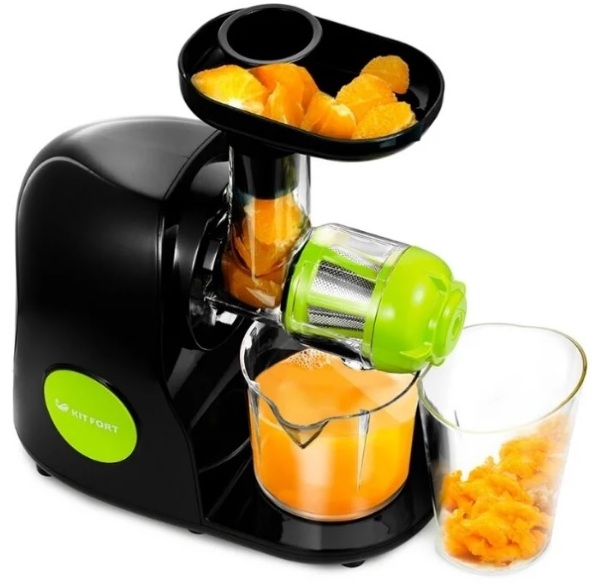 Model "KT-1111" from the company "Kitfort" in operation, separation of juice and cake in different containers