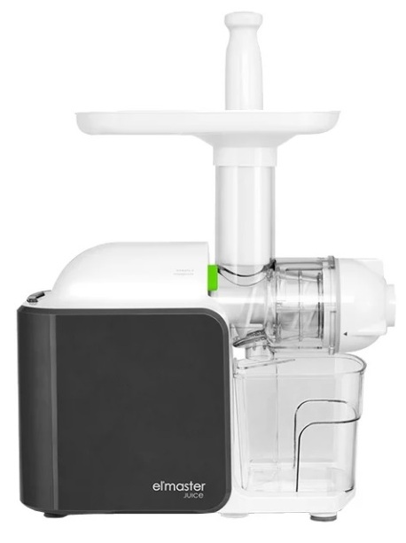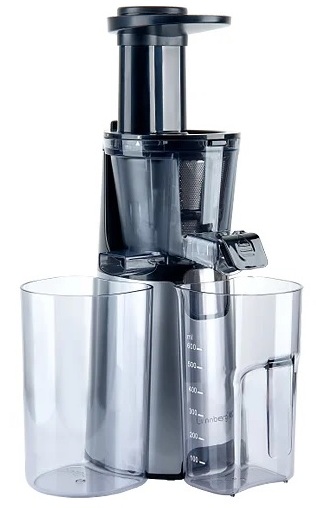 Juicer with two containers for sorting juice and cake. It is equipped with many nozzles and additional devices that allow you to quickly and comfortably prepare the necessary drink or food.